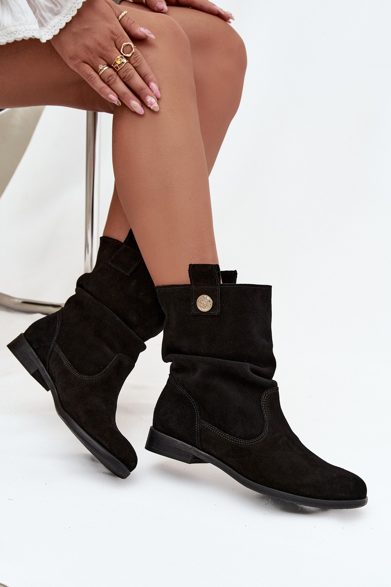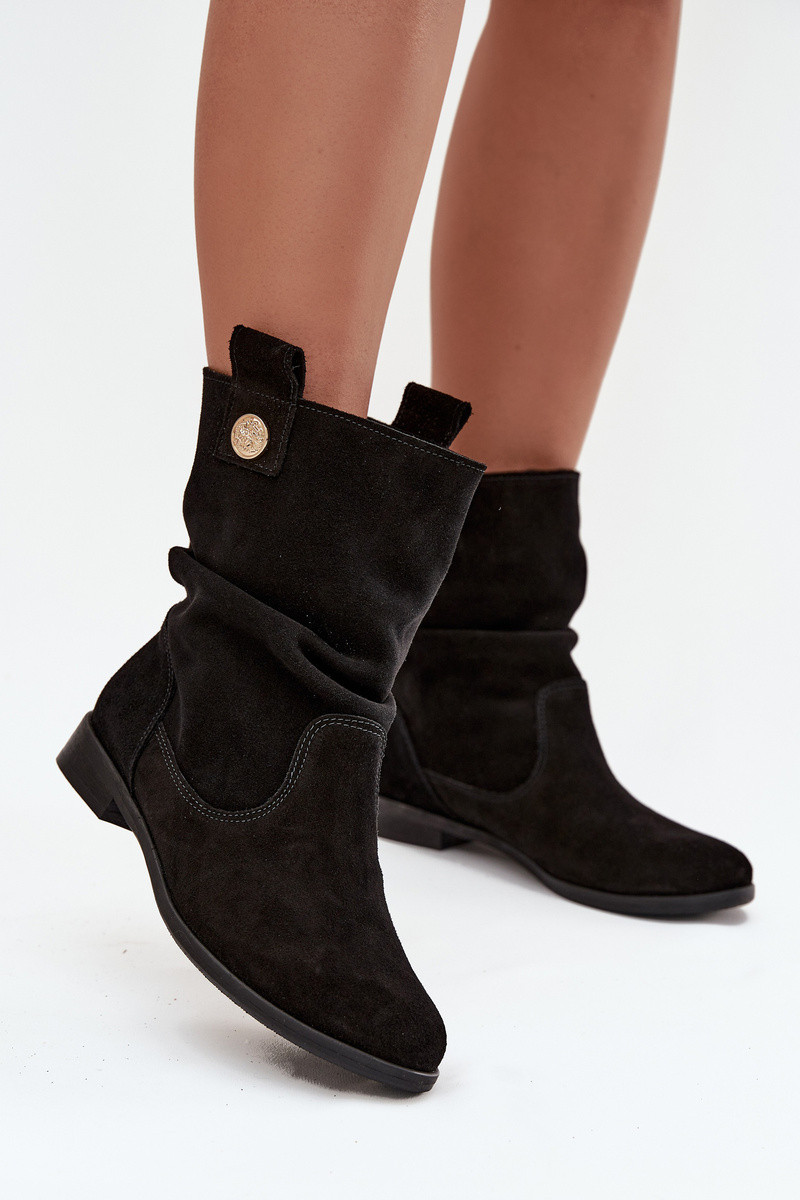 Pelle Scarpe scamosciate Femminile Con volant riscaldamento Zazoo 4210 colore nero