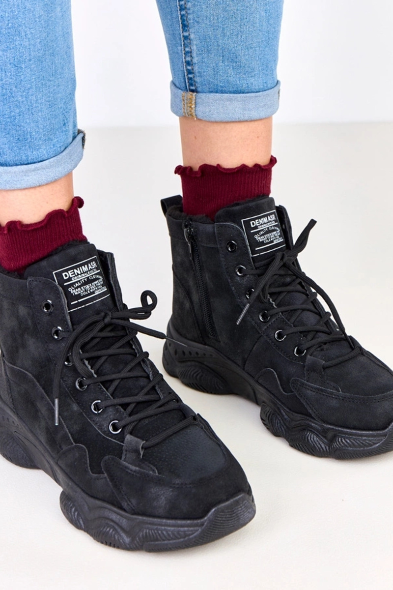 Scarpe da lavoro nere in suede sintetico con pelliccia, Chakles