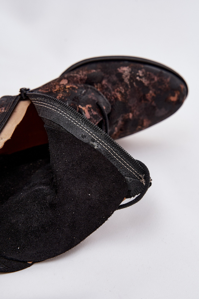 Stivaletti in camoscio con tacco largo Tai turiciejka 06391-02 di colore nero e oro