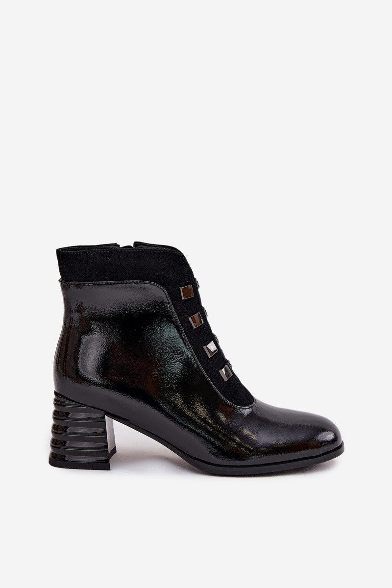 Stivaletti in pelle sintetica da donna con effetto verniciato D&A MR52-144 color nero