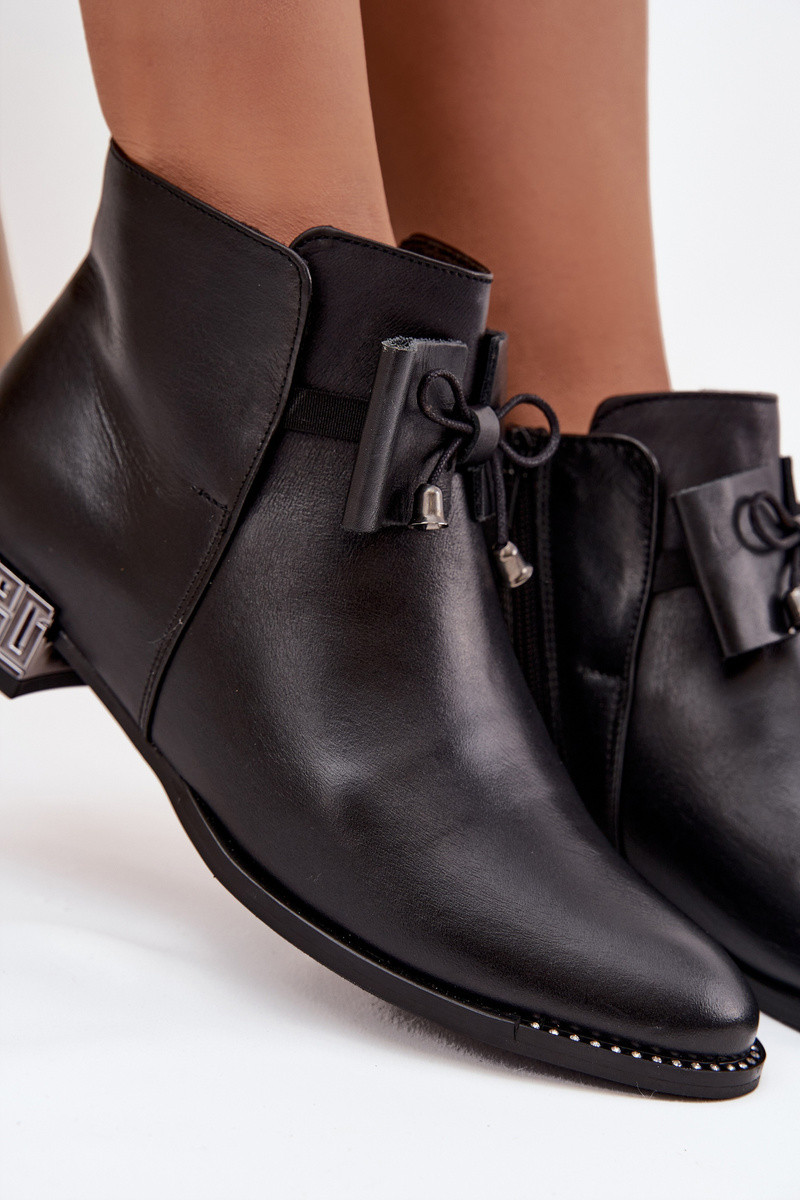 Stivaletti da donna in pelle naturale con tacco basso Zazoo 1396 neri