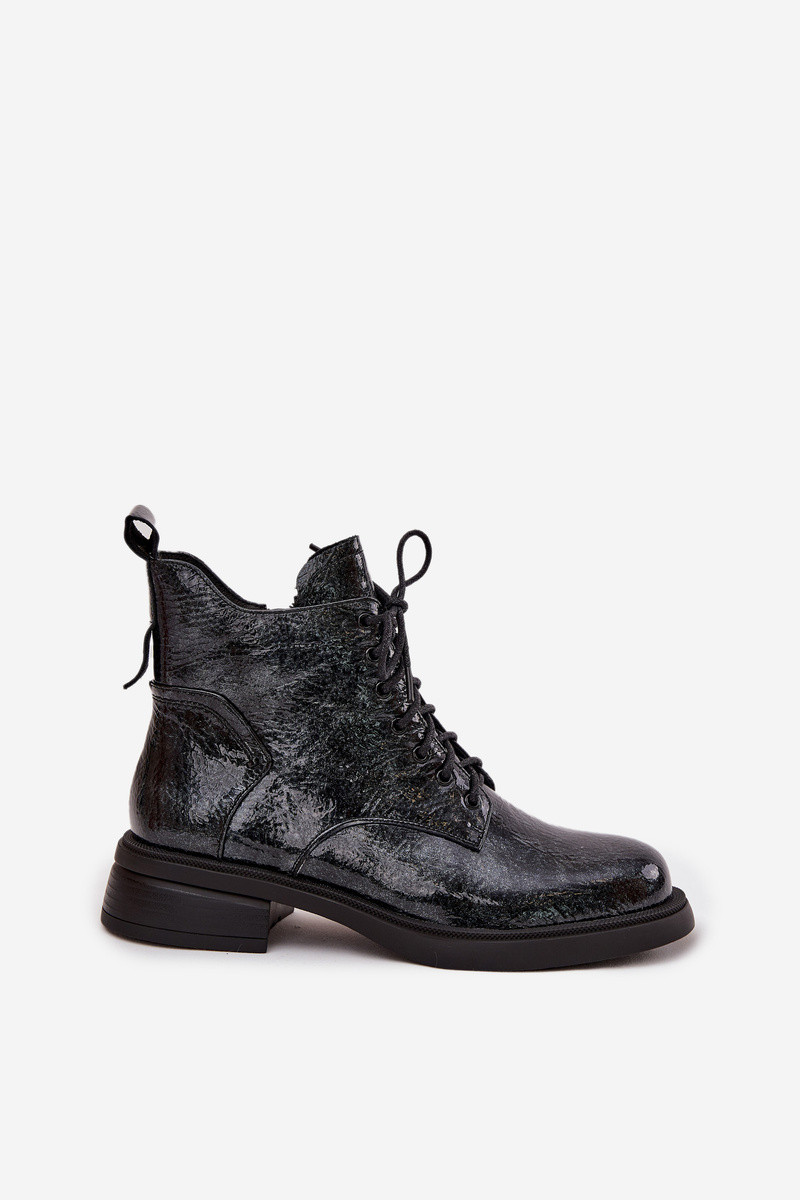 Stivali alla caviglia lucidi in pelle da donna Klocke D&A LZ52-954 blu scuro
