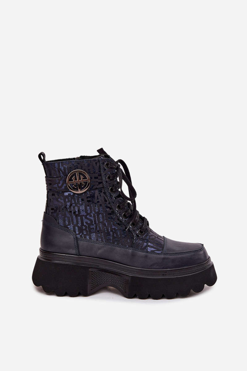 Stivaletti in pelle da donna con piattaforma e dettagli decorativi Artiker 57C2271 blu scuro