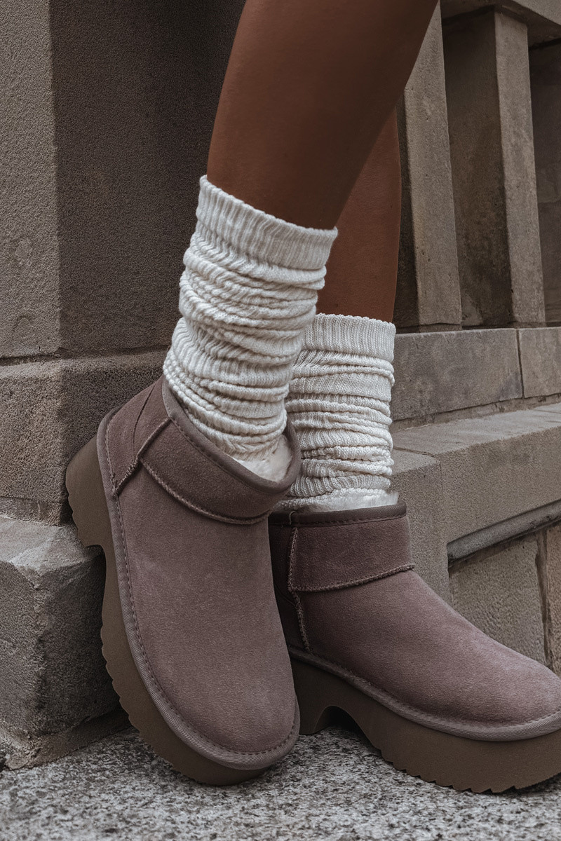 Stivali da neve da donna in camoscio naturale imbottiti con pelliccia color chaki Milora