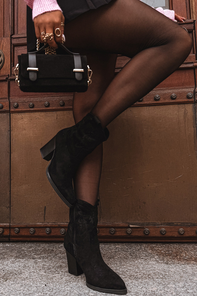 stivali stile coAboy Femminile con i tacchi in ecopelle scamosciataoAe colore nero Carissa