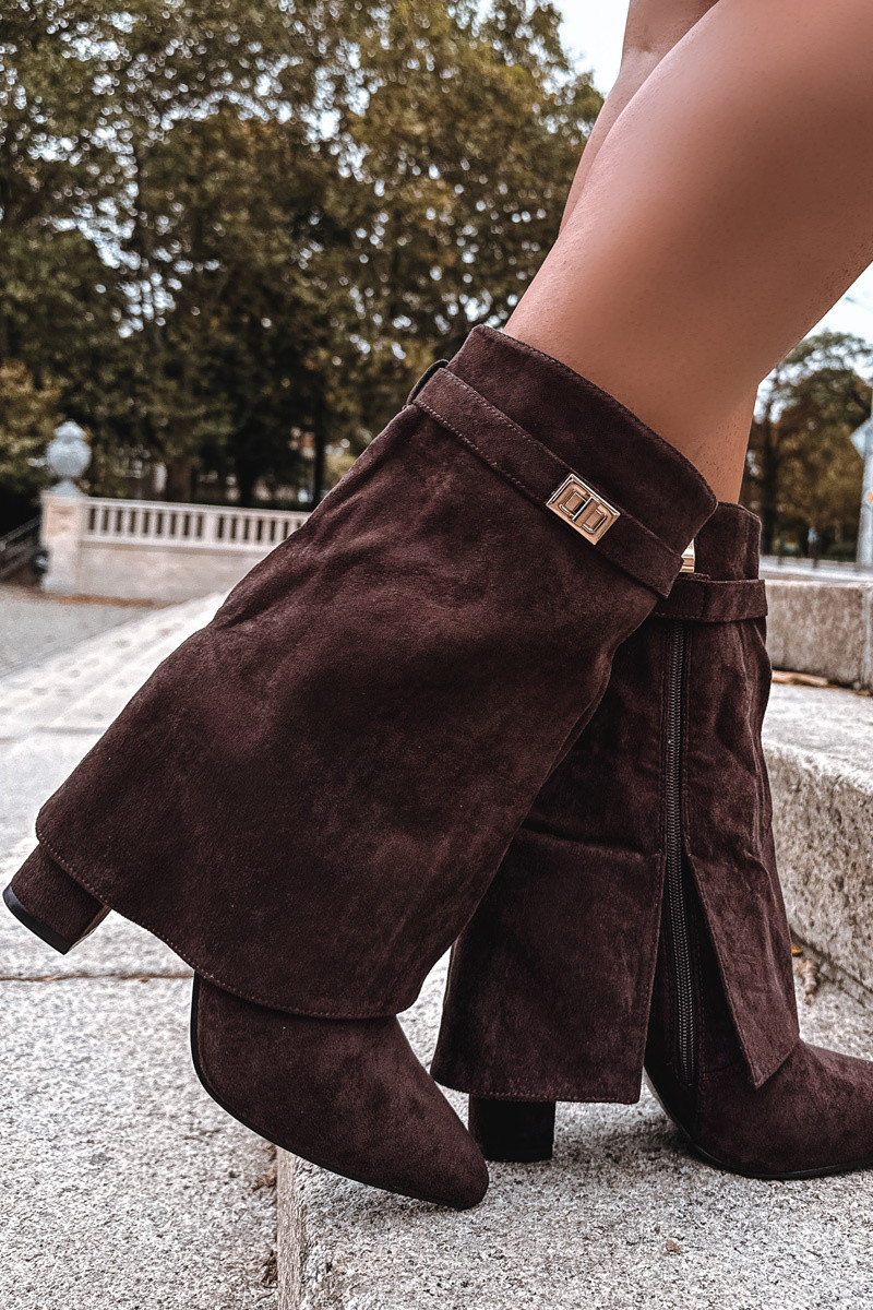 Stivaletti caldi da donna con tacchi decorati color cioccolato Luvielle