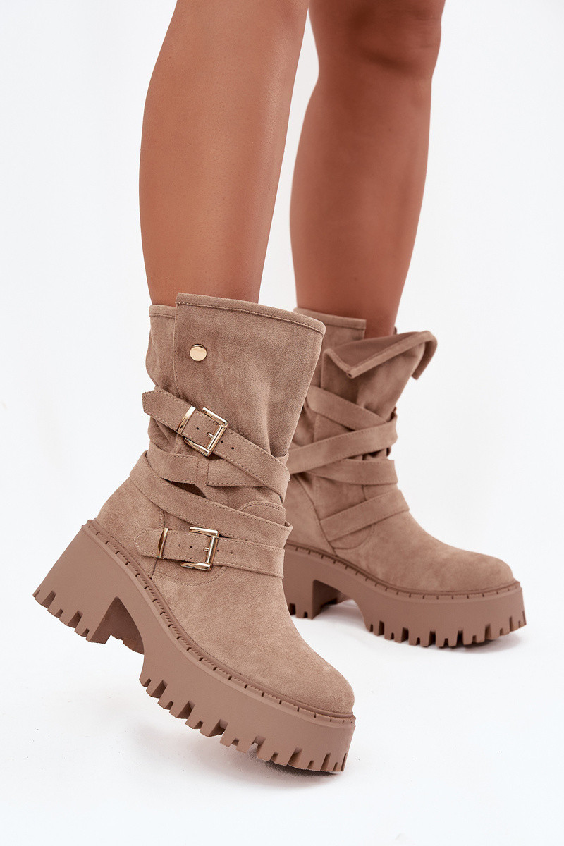 Stivali da donna Su tacchi enormi con fibbie I Strisceem beige Nerelisa