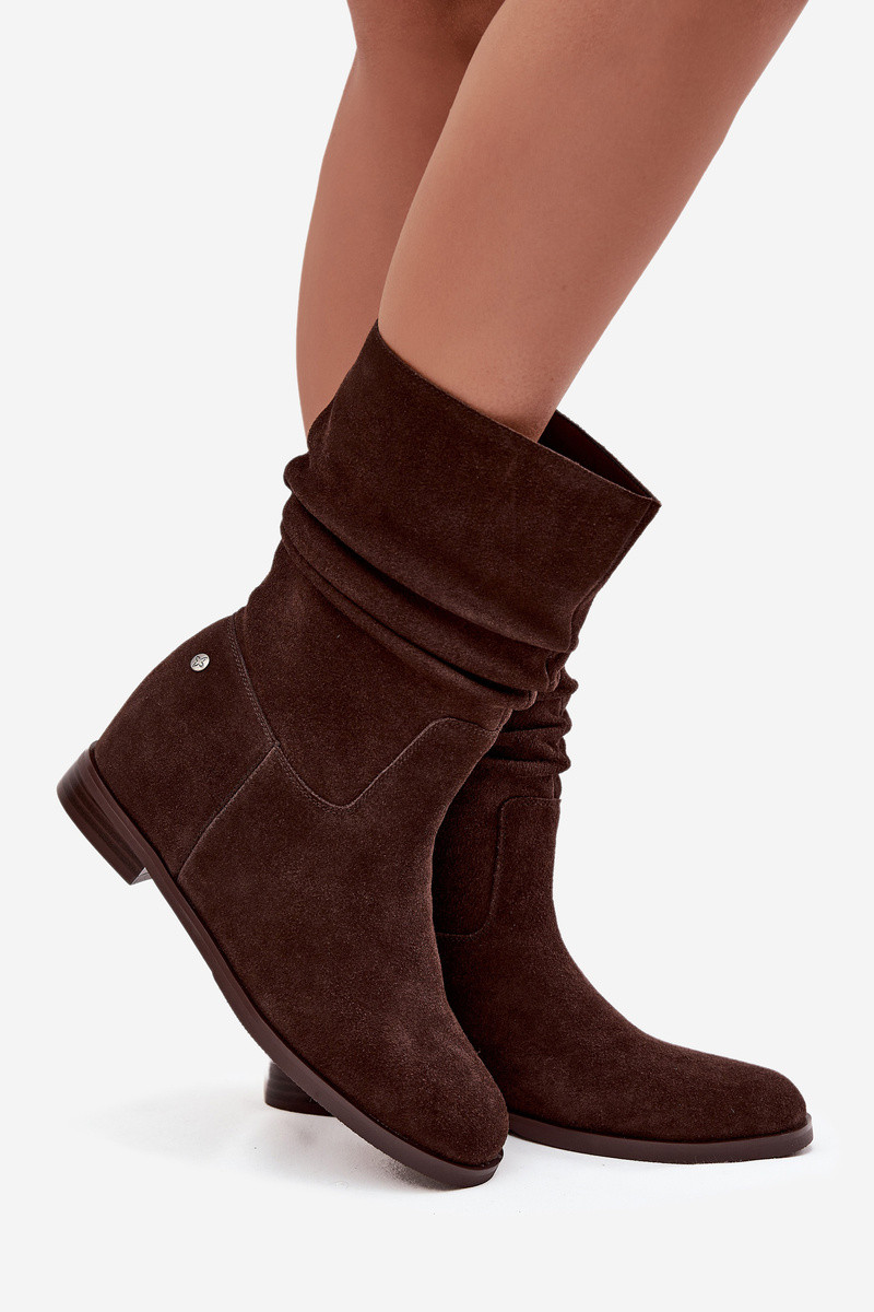 Stivali in suede color cioccolato foderati per donna con rouches Tai turiciejka K7211-02