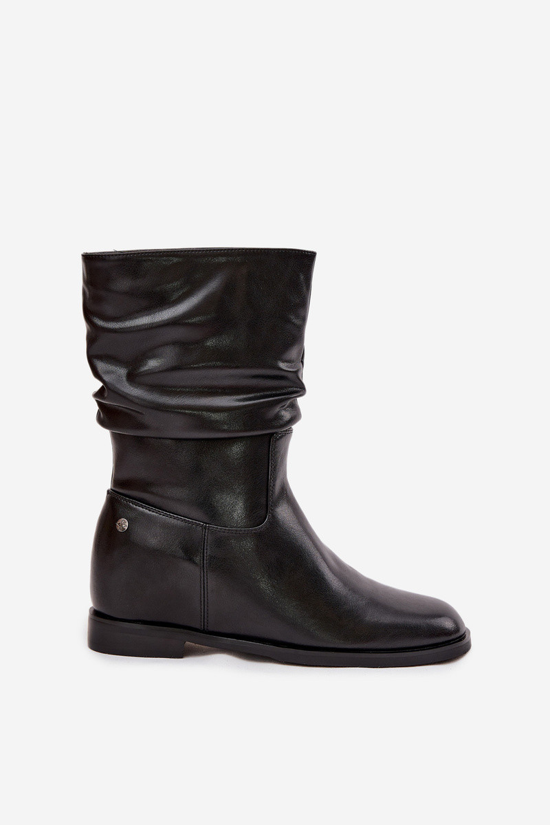 Pelle Stivali da donna Con volant riscaldamento Deveciejka K7211-01 colore nero