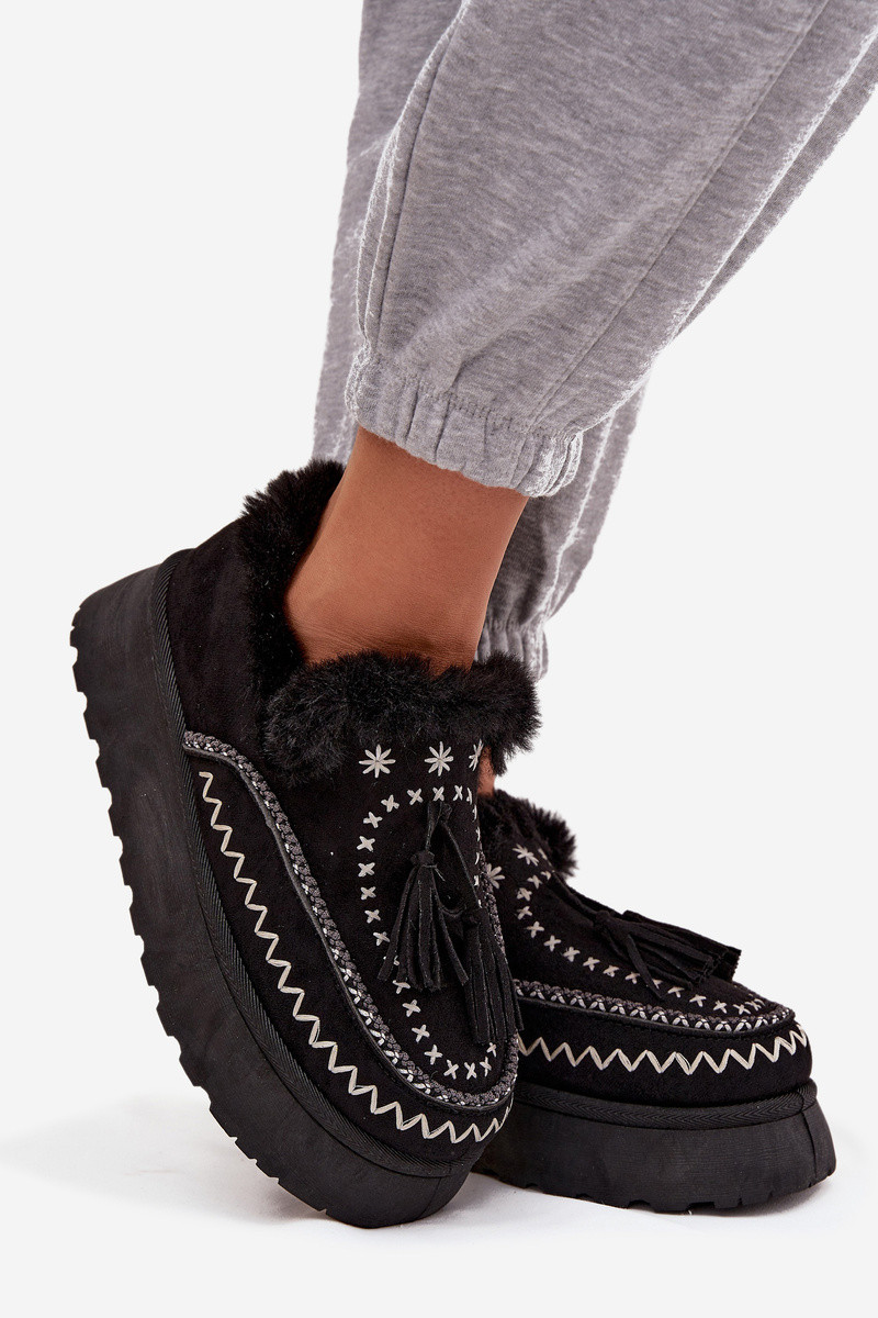 Stivali da neve Femminile con una piattaforma con una pelliccia E frangia colore nero Ferayne