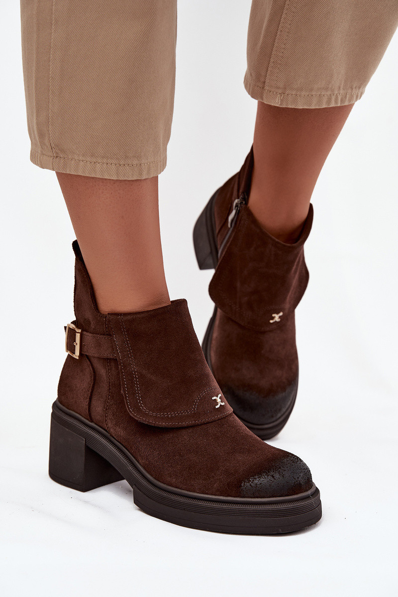 Stivaletti caldi in suede naturale "Zazoo 1156" color cioccolato