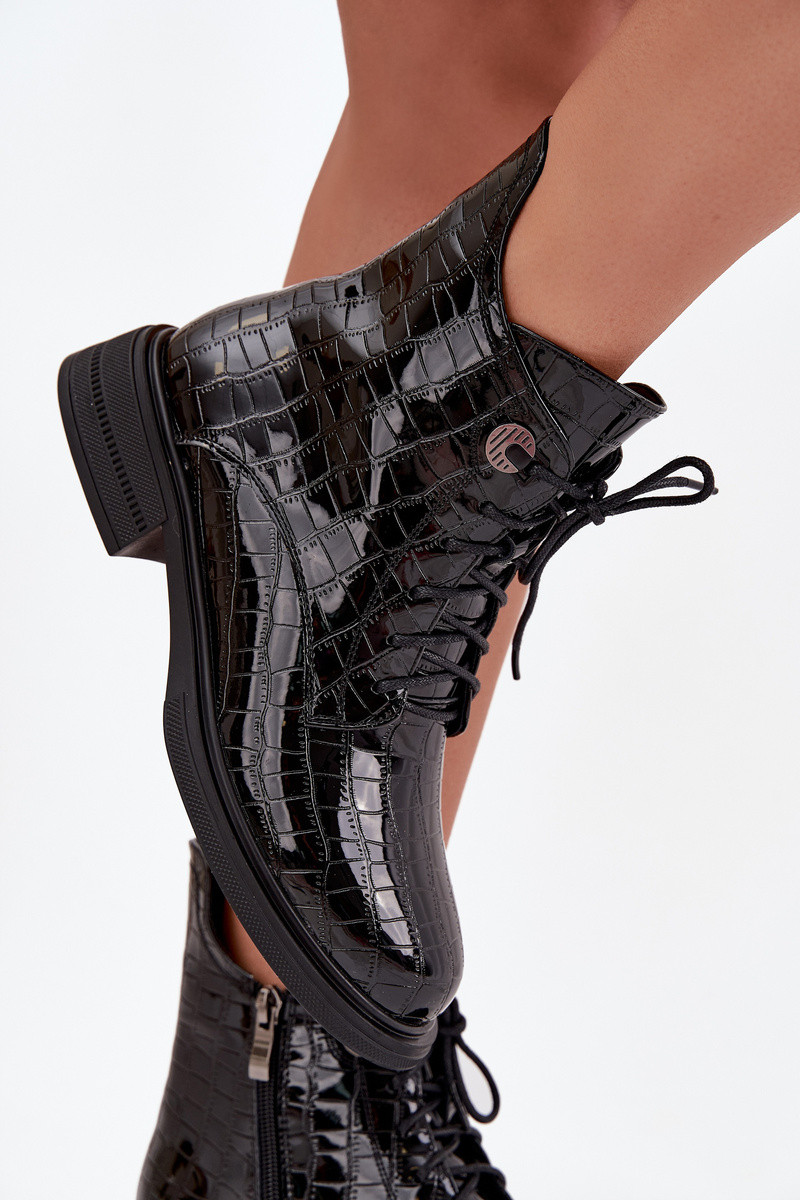 Pelle con effetto vernice Stivali con un impronta riscaldamento colore nero Juviane