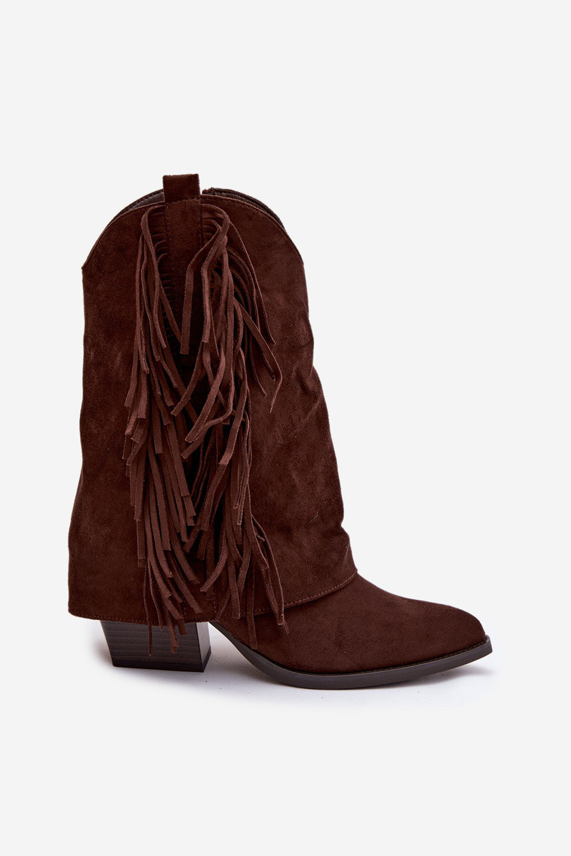 Stivaletti da donna in stile cowboy color cioccolato con frange e tacco Gralina