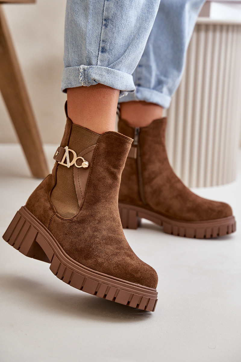 riscaldamento Stivali da donna Ze colore doratom Detalem in ecopelle scamosciataoAe colore marrone Bervena