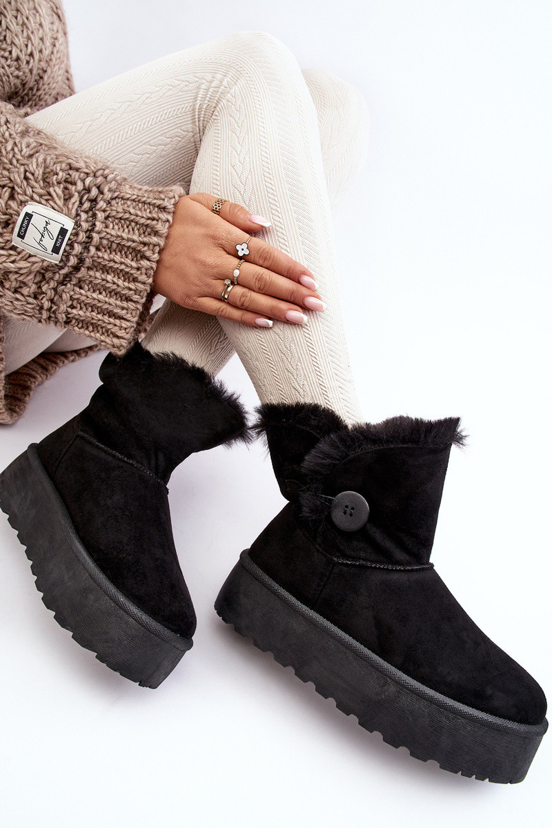 Stivali da neve donna con plateau e pelliccia neri INikasem