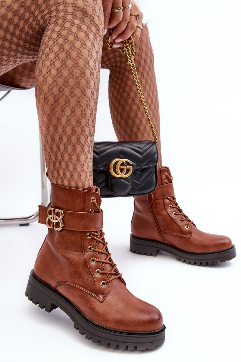 Stivali da lavoro femminili alla caviglia con zip e ornamenti marroni Ciossava