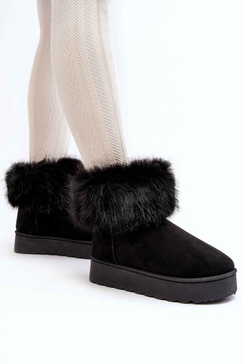 Stivali da neve femminili con piattaforma e pelliccia neri Tai Turincy