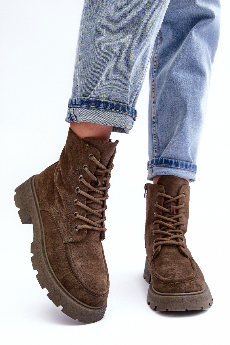 Scarpe scamosciate scarpe riscaldamento con tacchi larghi colore kaki Zikey