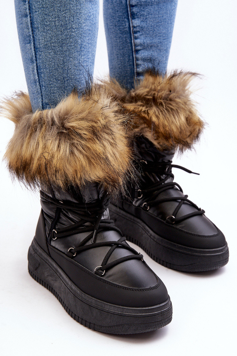 Stivali da neve per donna con pelliccia e piattaforma colore nero Įjungtabilla