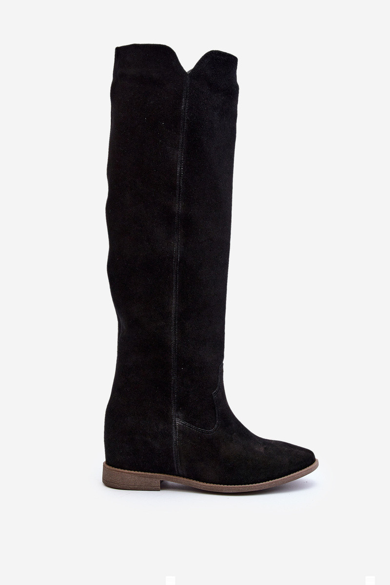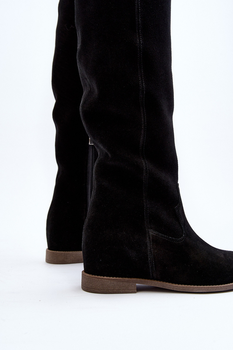 Zazoo 3407 dalla pelle scamosciata stivali all altezza del ginocchio con tacchi larghi colore nero
