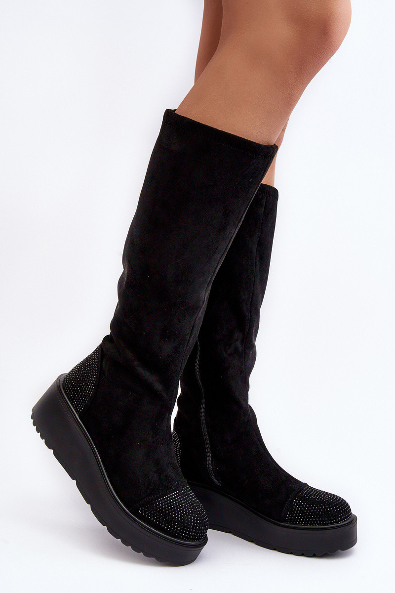 stivali da donna dalla pelle scamosciata con una piattaforma S.Barski HY53-8 colore nero