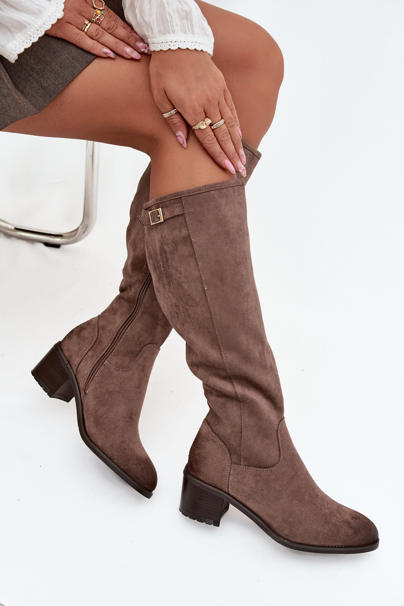 Stivali caldi con i tacchi con fibbie dorate Vinceza 58589 beige