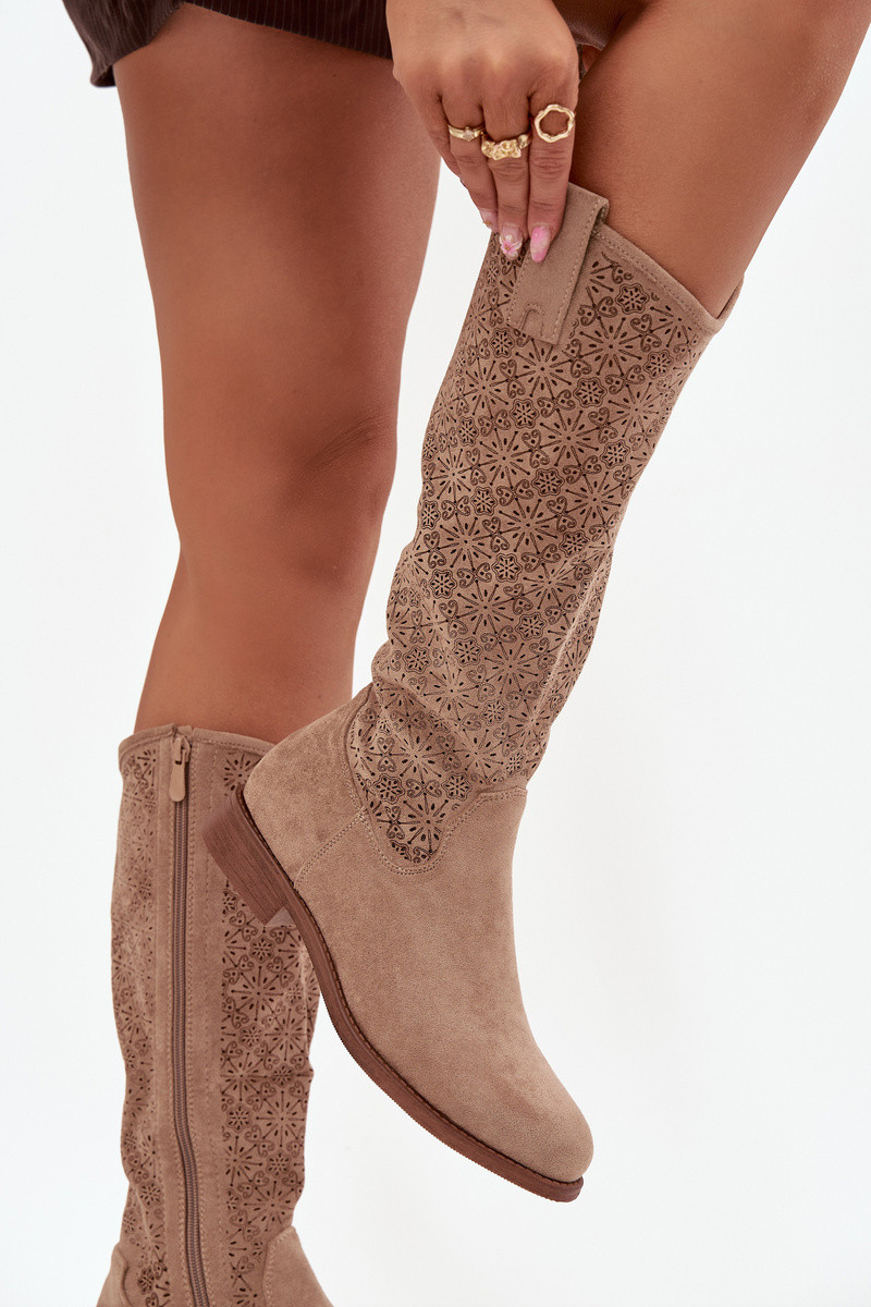 stivali da donna con elementi traforati con tacchi larghi S.Barski HY52-534 beige
