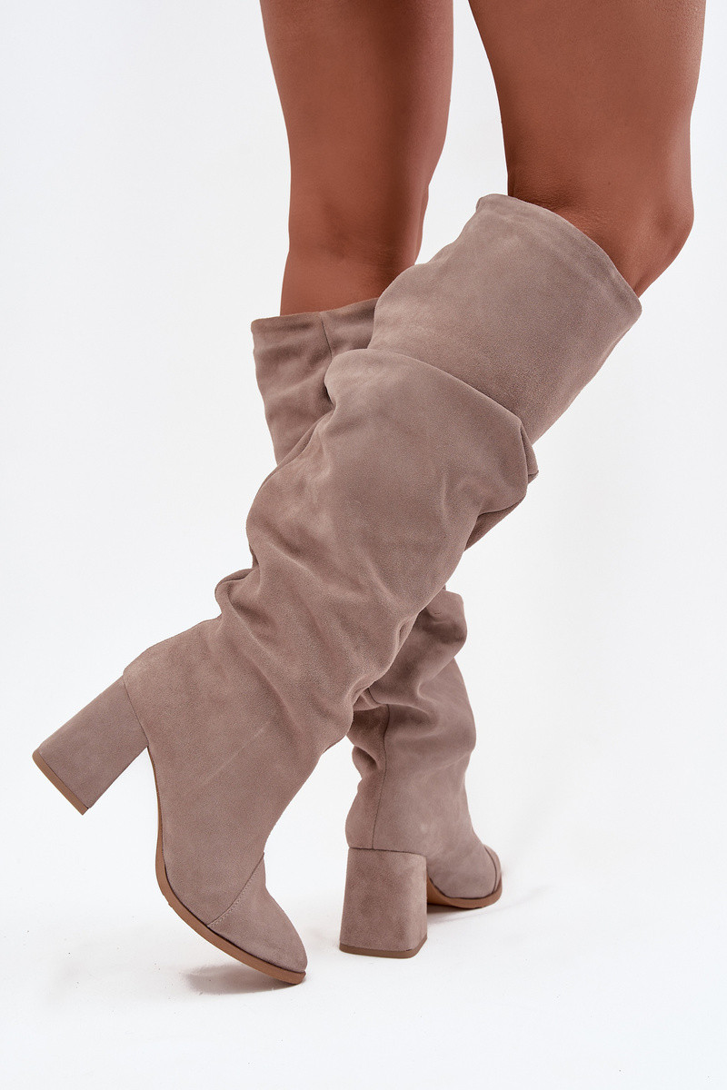 Rugoso stivaliAbilitatoturalnego dalla pelle scamosciatau con i tacchi riscaldamento Zazoo 4228 beige