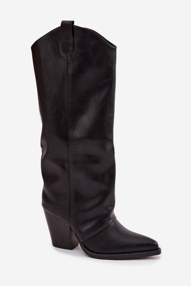 riscaldamento stivali stile coAboy con i tacchi in ecopelle colore nero Devevine