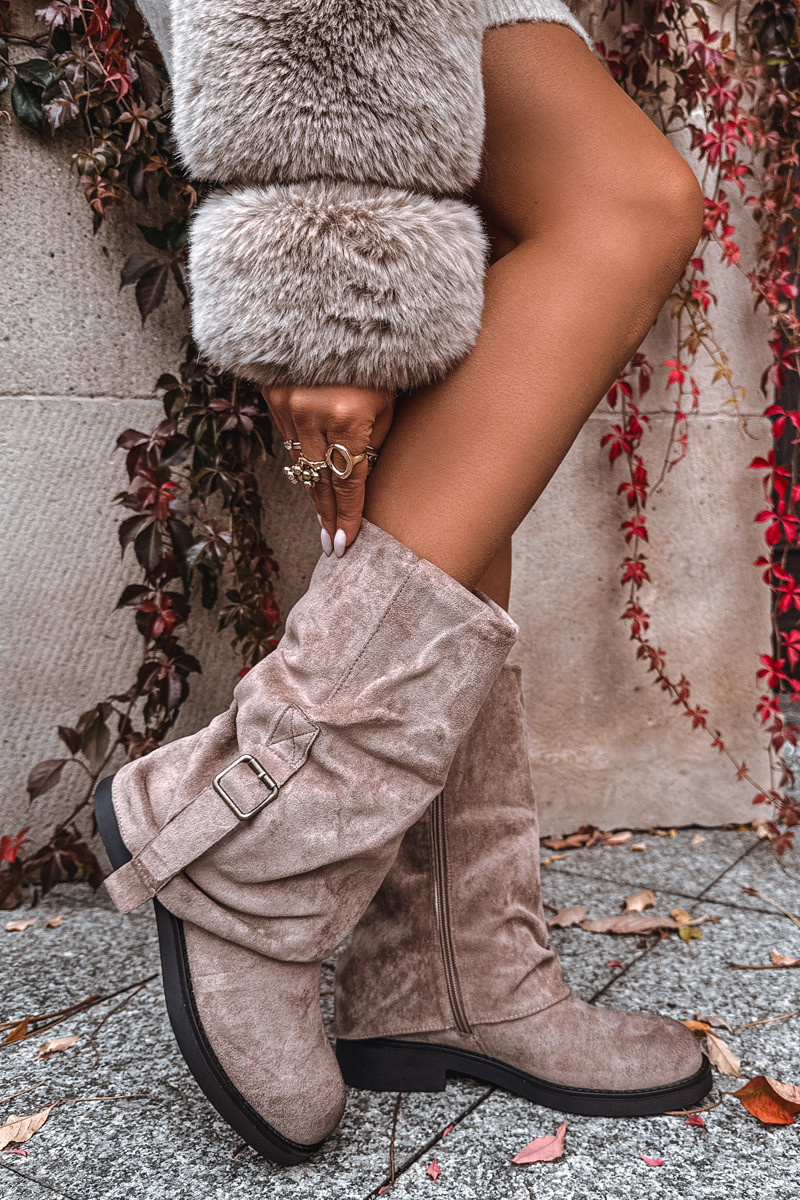 stivali da donnaINyAiniętą CholeAką Metà polpaccio con fibbie colore kaki Minelle