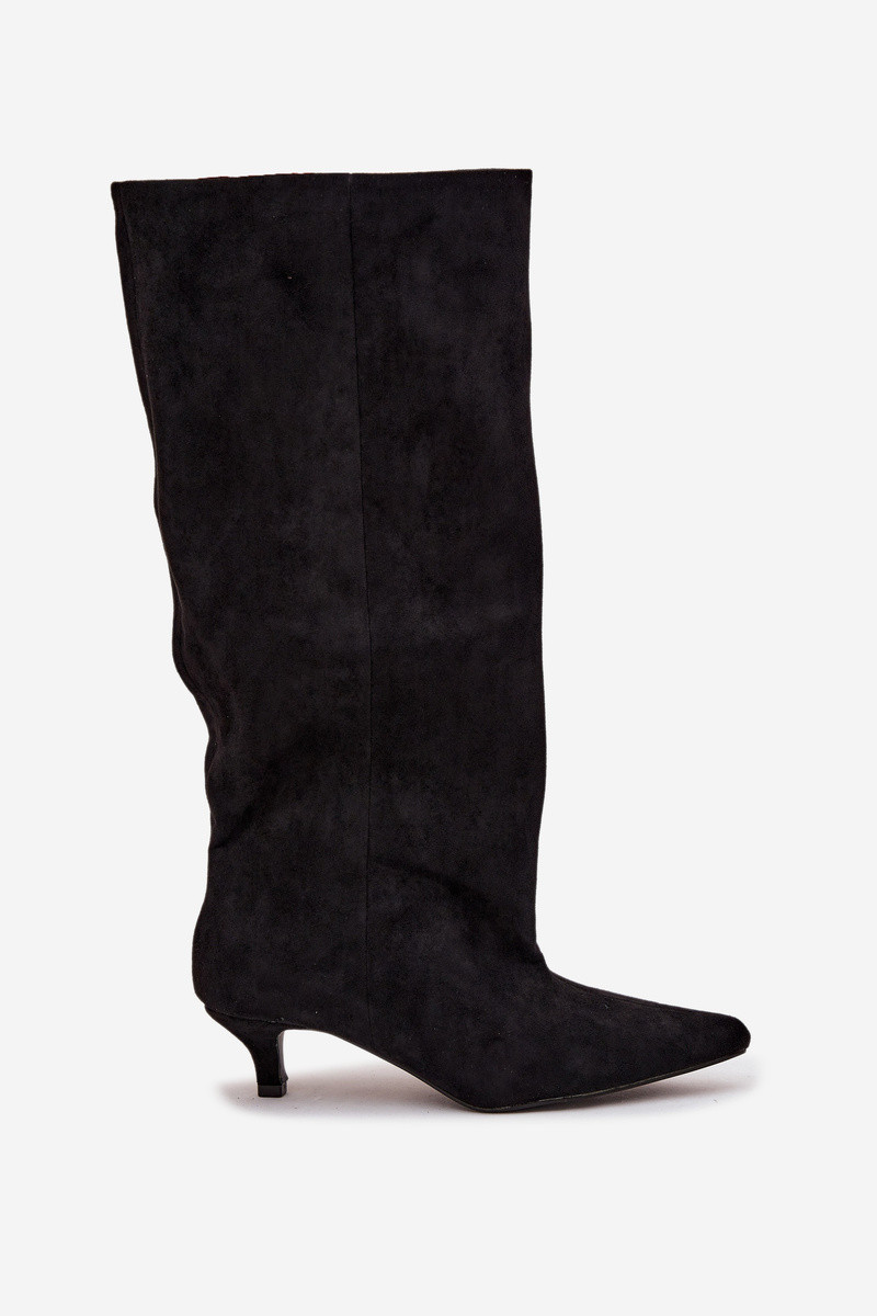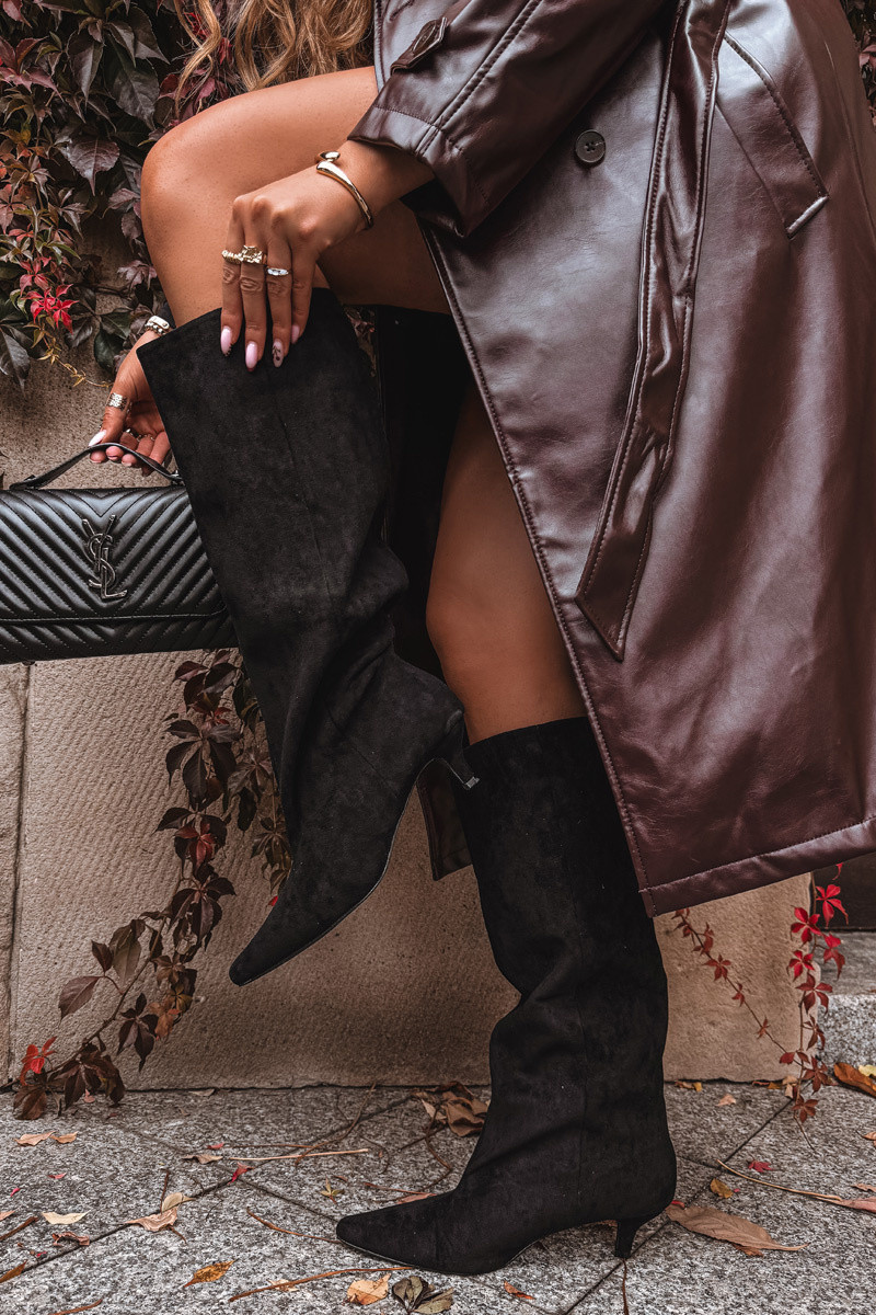 Stivali alti da donna in pelle scamosciata neri con tacchi Pheona