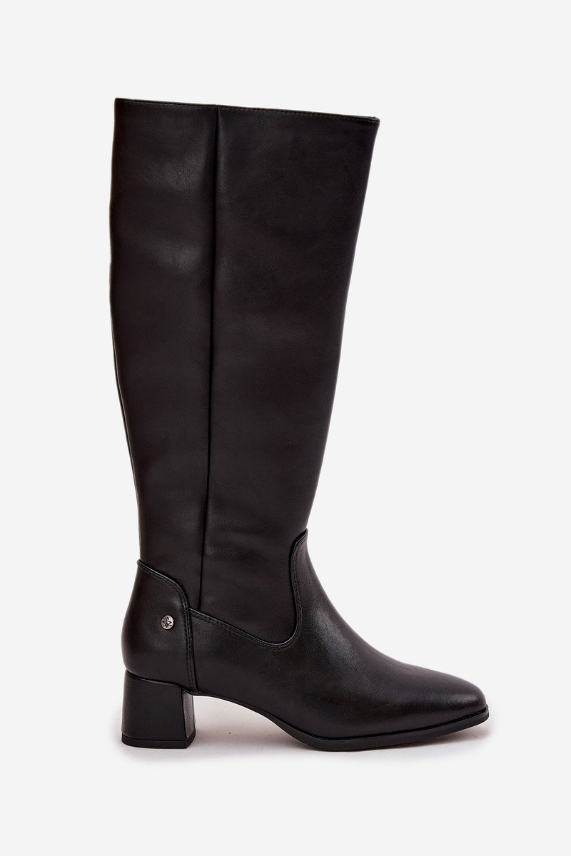 Stivali alti in pelle nera foderati per donna con tacco Tai turiciejka A7165-01