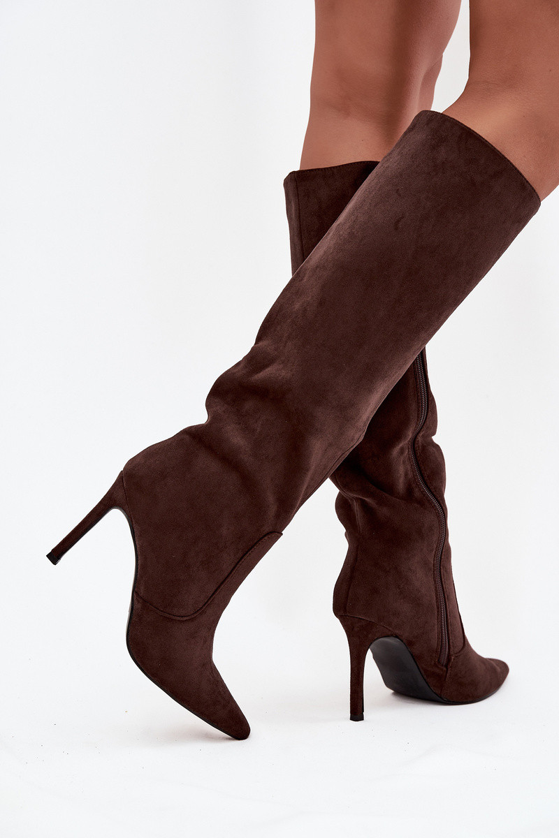 Stivali alti in suede color cioccolato foderati per donna con tacco sottile Rosavine