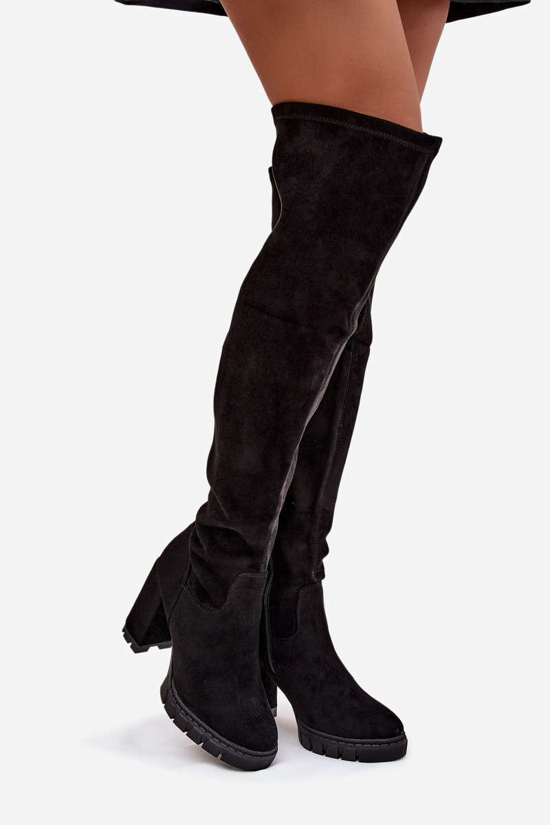 Stivali alti da donna sopra il ginocchio con tacchi in camoscio sintetico neri Tahlina