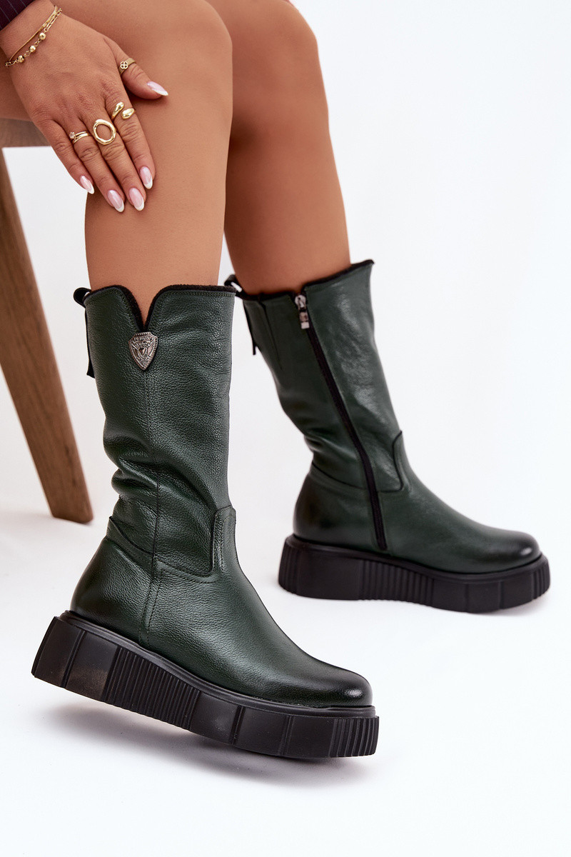 Stivali lunghi in pelle da donna con lana verde Zazoo 70121