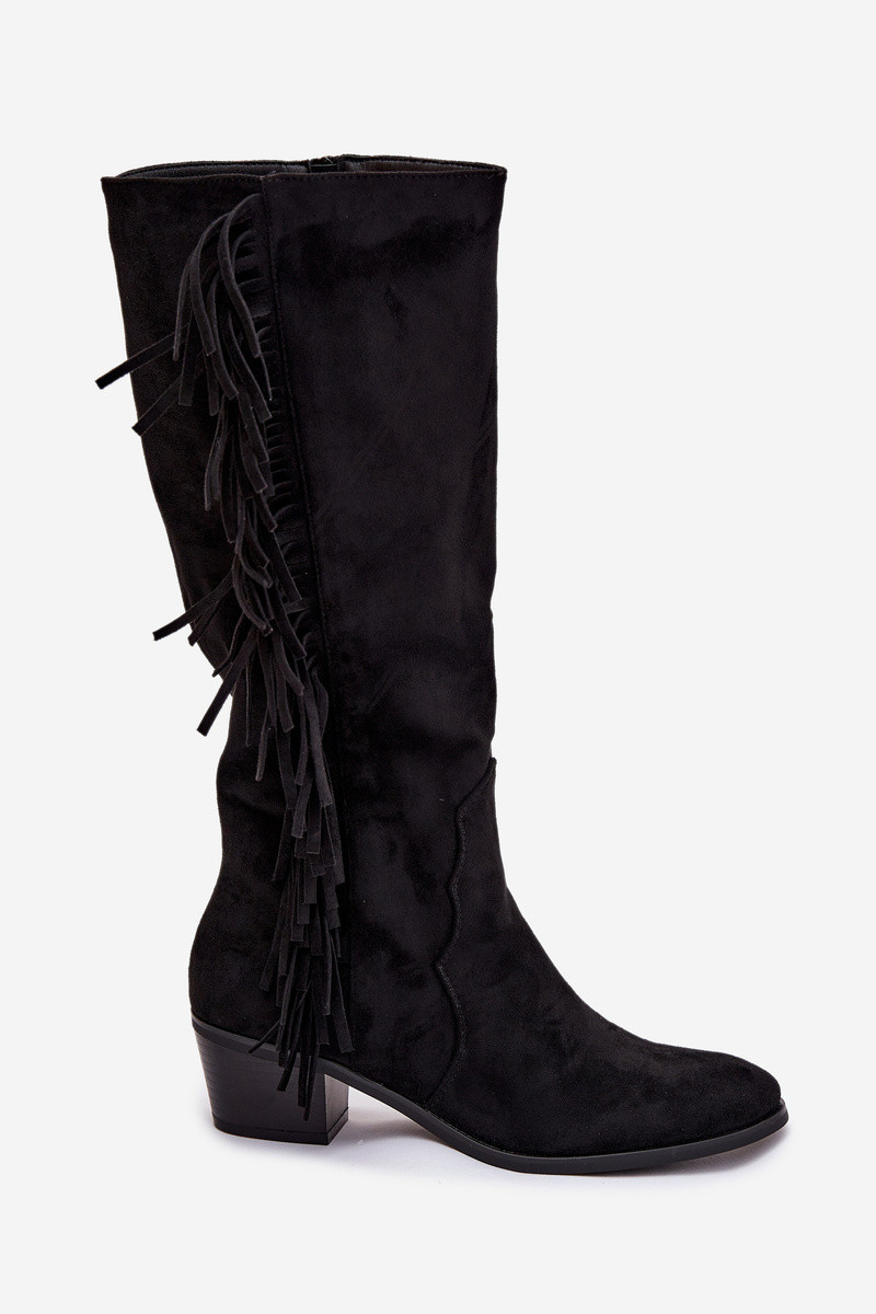 Stivali alti neri da donna in stile cowboy con imbottitura, tacchi e frange Firlina