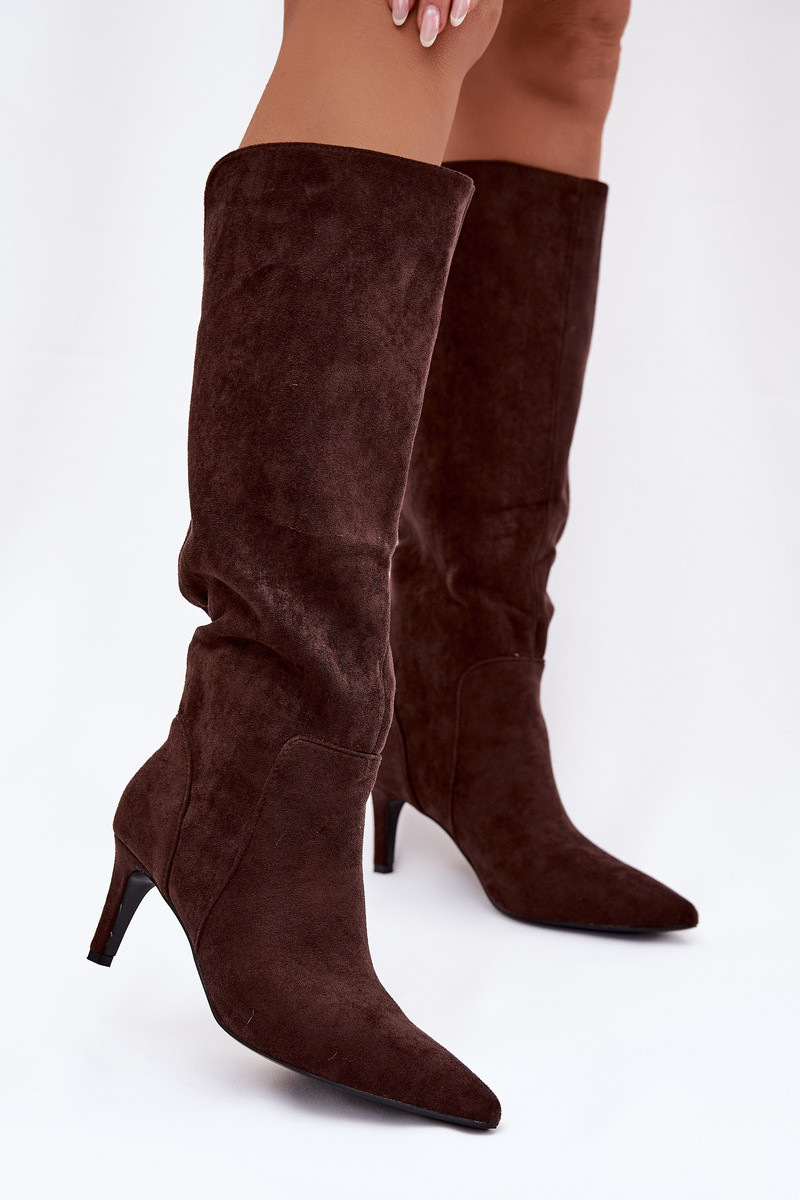 Stivali alti marroni da donna con imbottitura e tacchi sottili in suede sintetico Arelisse