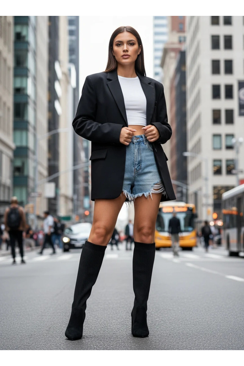 Stivali alti neri da donna con tacchi Yserine