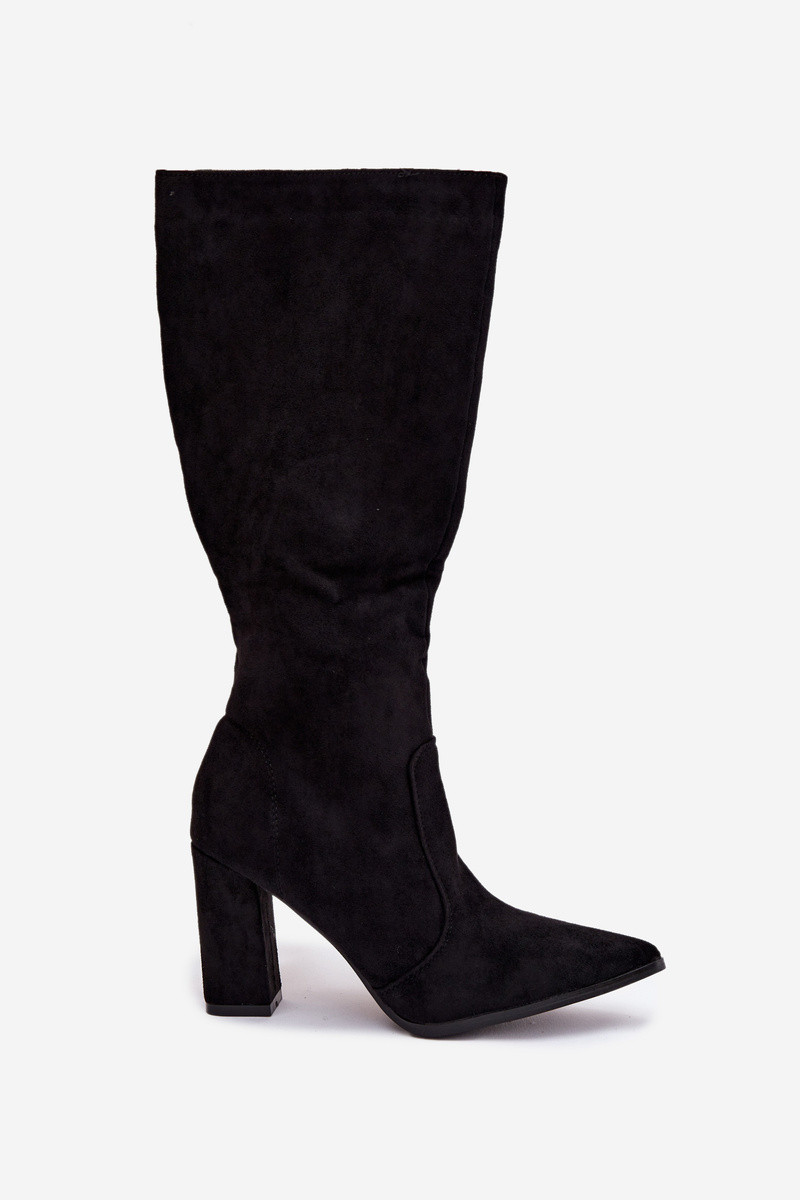 Stivali alti neri da donna con imbottitura e tacchi in suede sintetico Įjungtarille