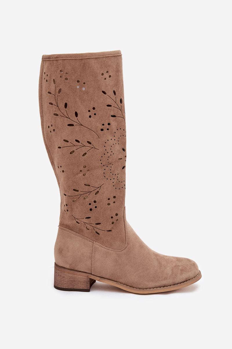 Stivali alti da donna color sabbia con elementi traforati Helinna
