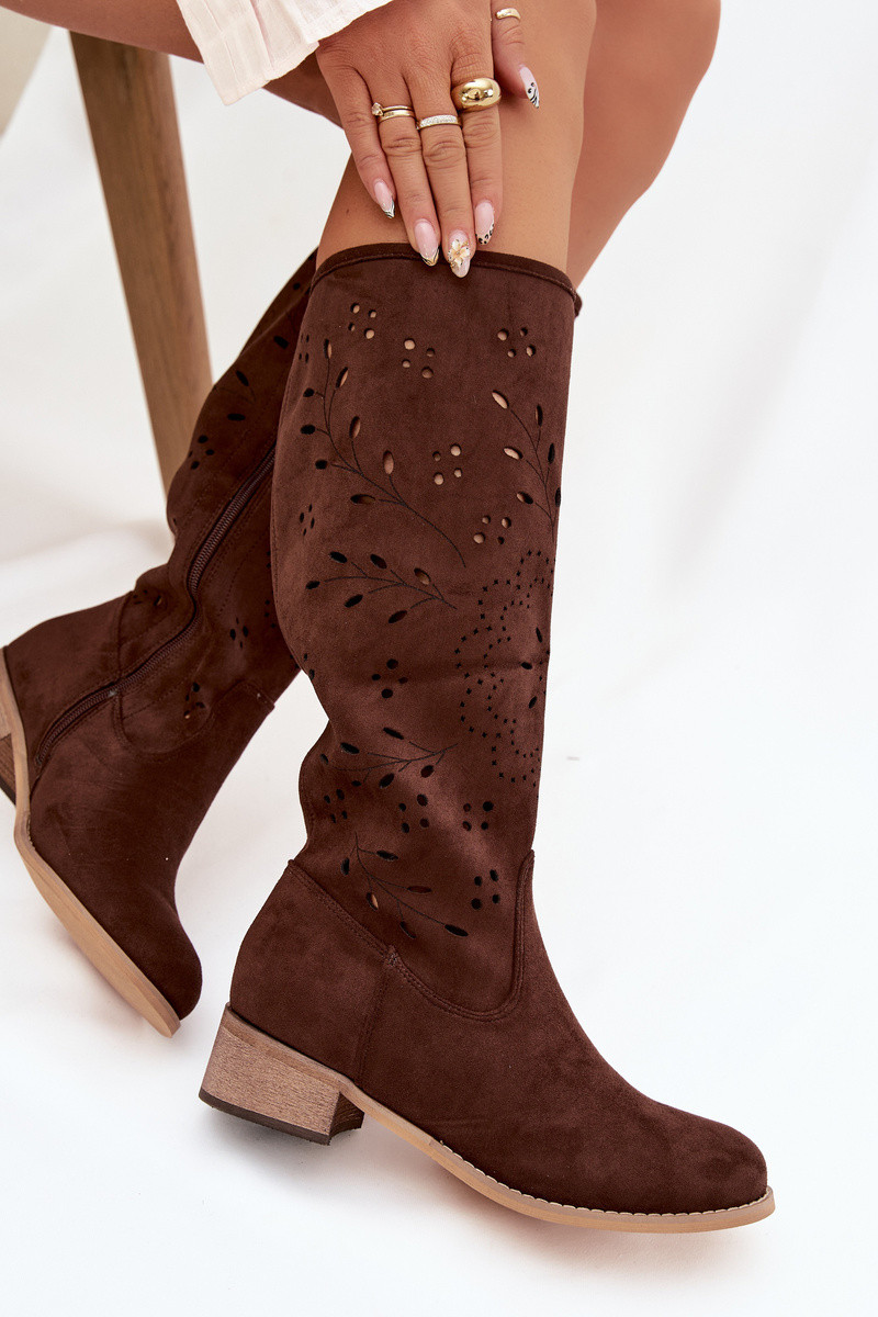 Stivali alti da donna color cioccolato con elementi in pizzo Helinna