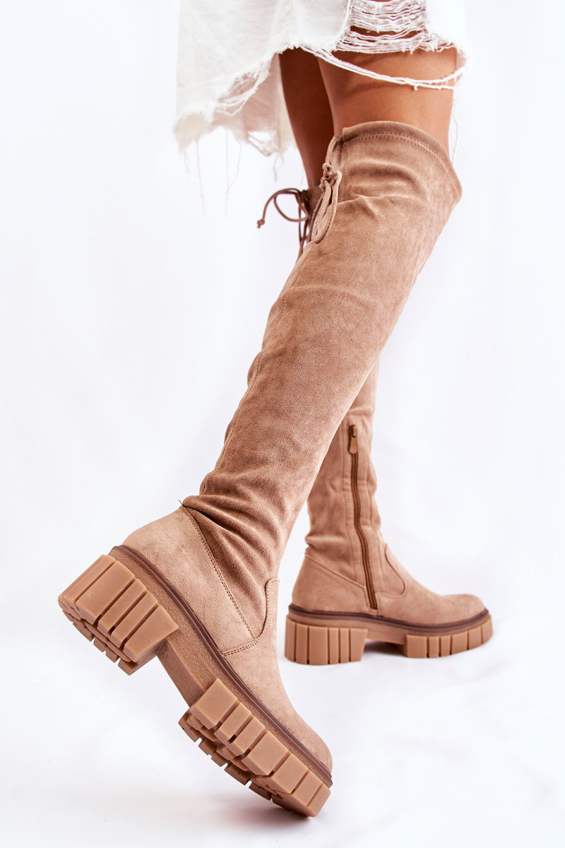 dalla pelle scamosciata Femminile stivali sopra il ginocchio beige Cheera