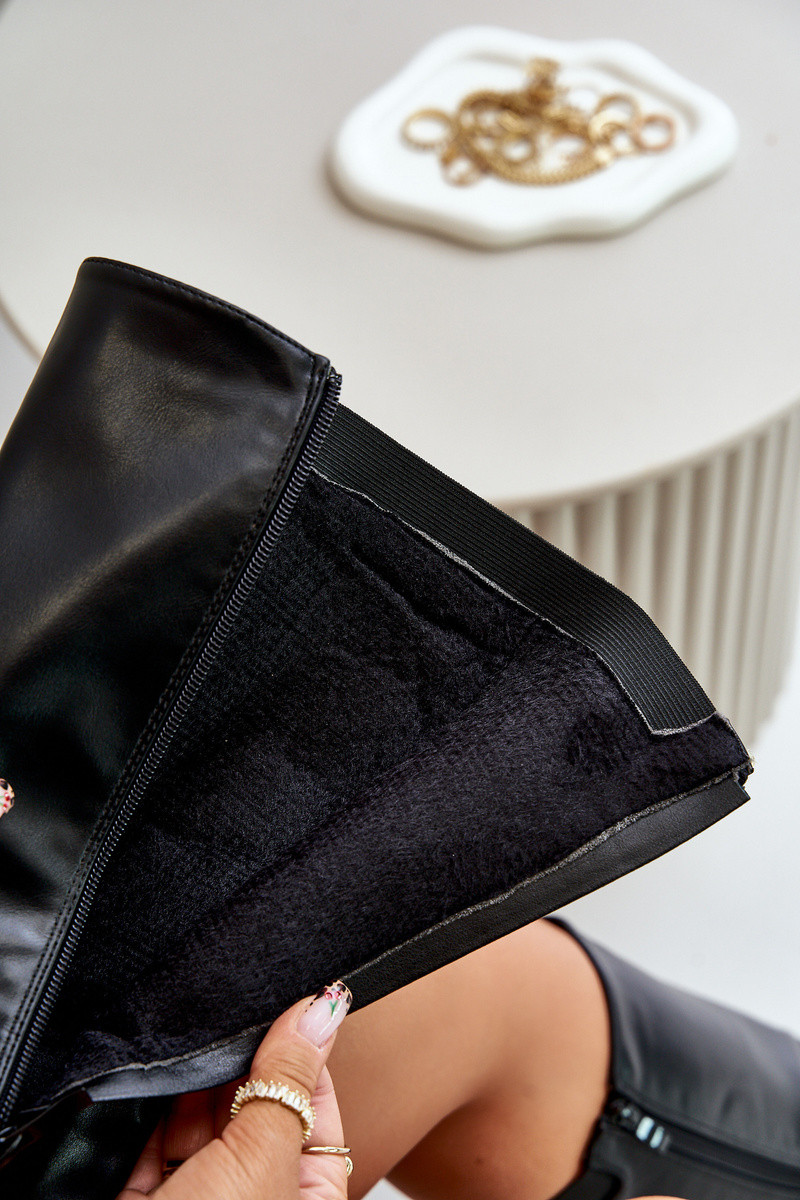 Femminile riscaldamento stivali con tacchi larghi con fibbie dorate colore nero Arsisna