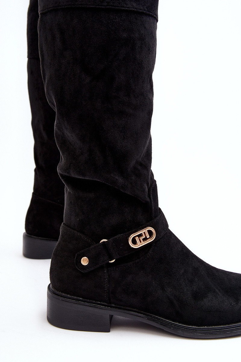 riscaldamento dalla pelle scamosciata stivali con tacchi larghi S.Barski HY07-31 colore nero