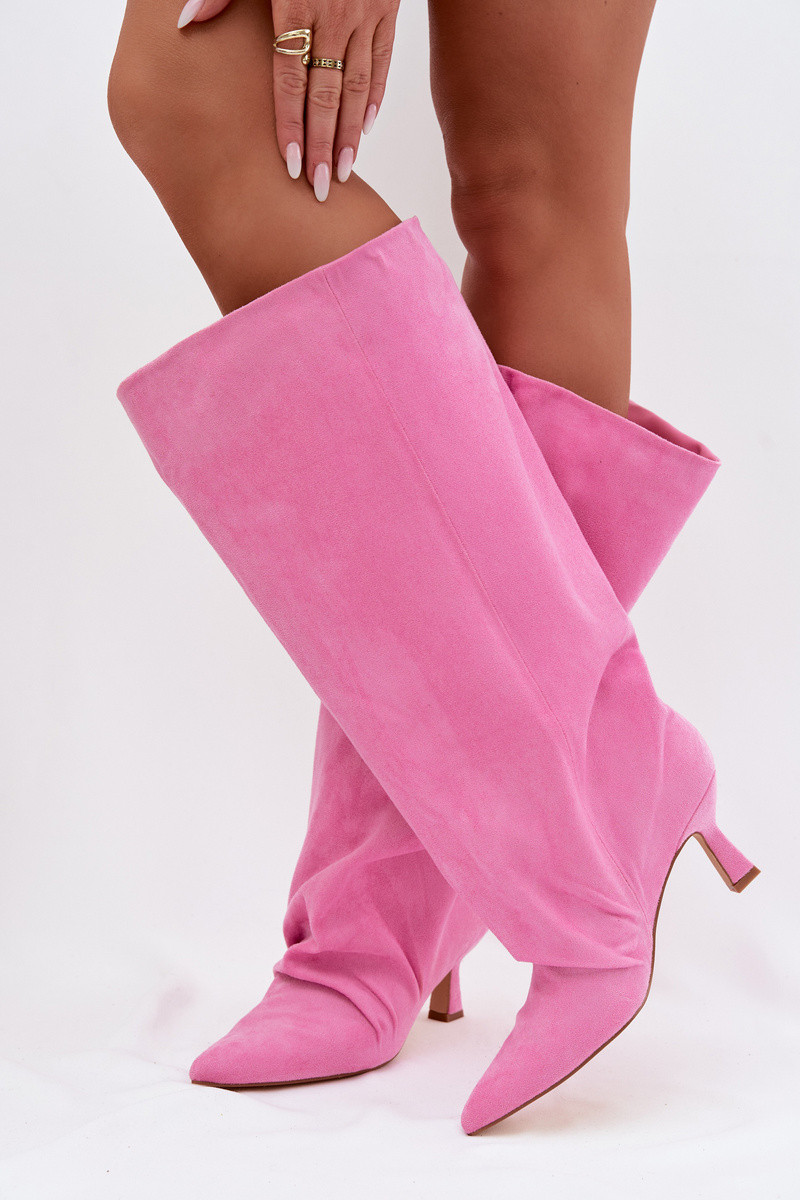 stivaliSzeroką CholeAką I Deverszczeniem con i tacchi colore rosa Harela