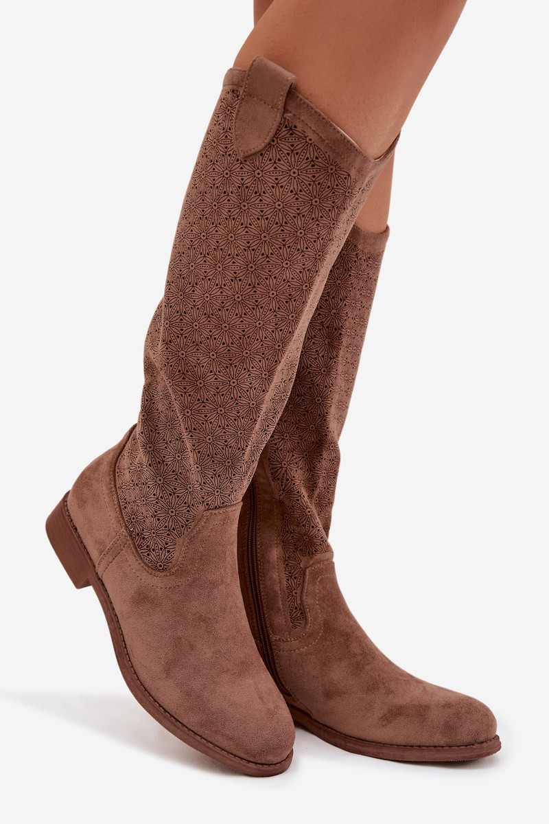 stivali da donna con elementi traforati con tacchi larghi S.Barski HY61-8022 colore marrone