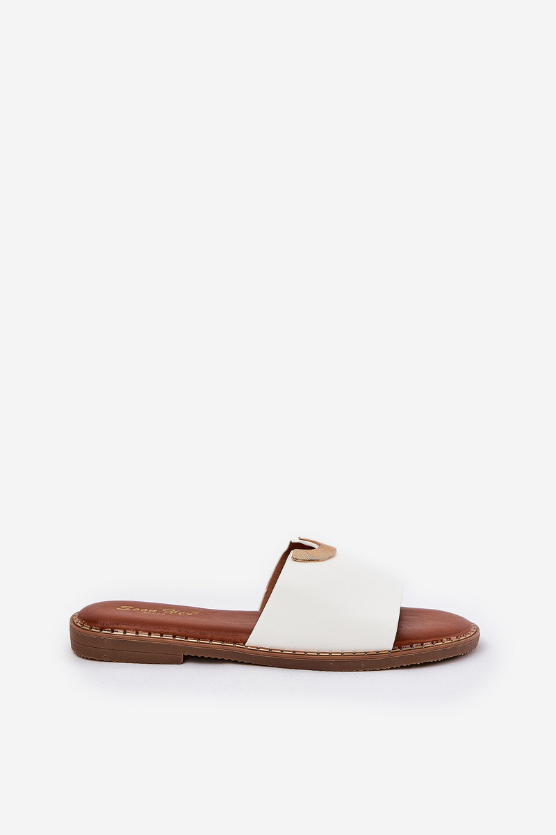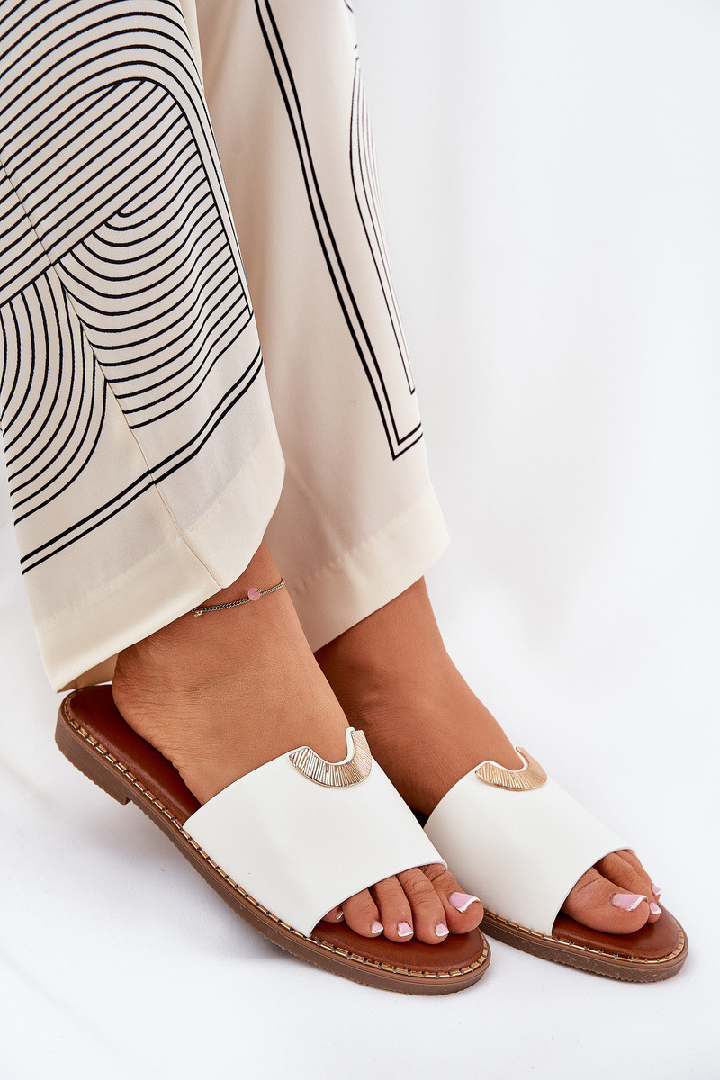 Pantofole bianche da donna in pelle sintetica con dettagli decorativi, "Mevith"